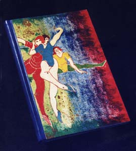 Ganzlederband aus blauem Leder mit gezeichneten Farbauflagen, durchrieben, mattiert, patiniert.